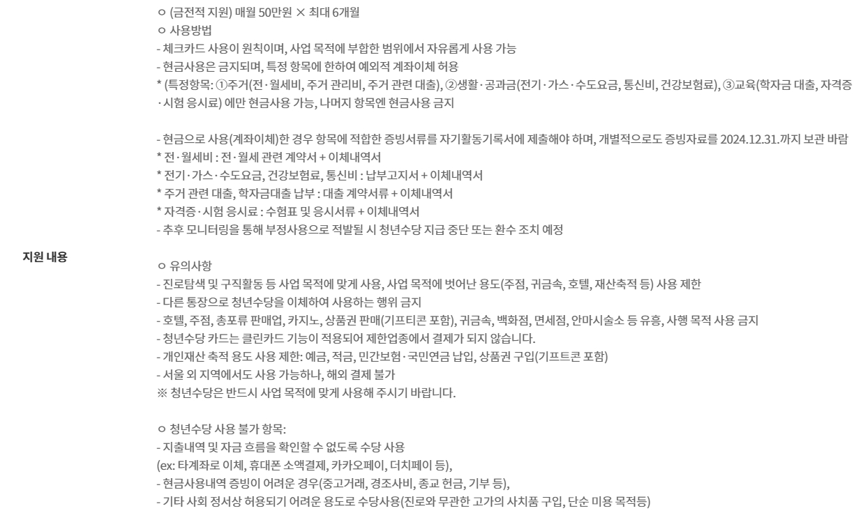 서울시 청년수당의 지원금액은 매월 일정한 금액으로 지급됩니다. 이 금액은 매년 업데이트되며, 서울시 공식 웹사이트에서 확인할 수 있습니다. 지원금은 수당 수령자의 계좌로 송금되며, 주로 은행 계좌를 통해 지급됩니다. 지원금은 신청자의 자격과 서류 검토 이후에 지급되므로, 신청자들은 신청 후 일정 기간 내에 결과를 확인할 수 있습니다.